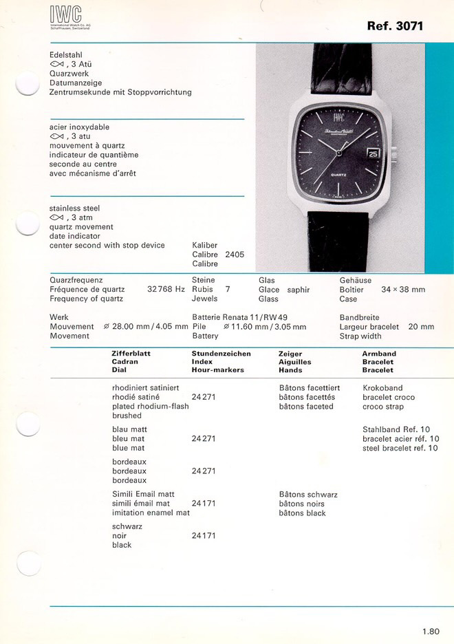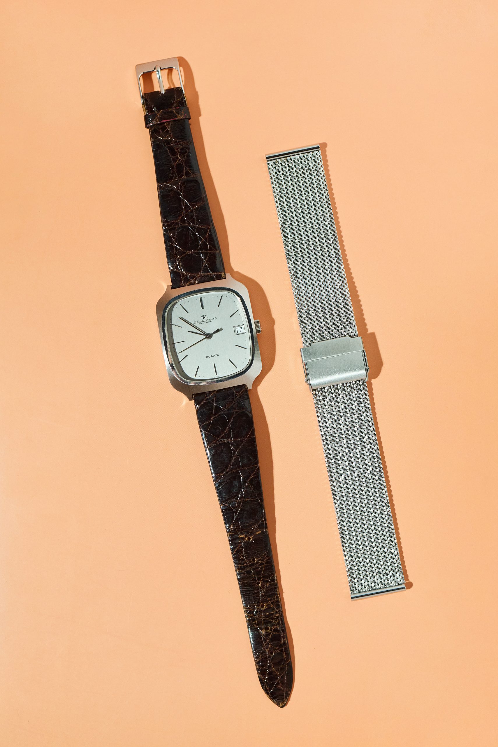 this is a rare IWC dresswatch from the 1970s. The 34 x 38mm steelcase is equipped with a beautiful silver-grey dial in flawless condition. The reference 3071 features the IWC quartz caliber 2405 which is running perfectly. The watch has never been polished before and is in mint condition if you consider it´s already 50 years old. It comes on a brown vintage leatherband with steelbuckle.