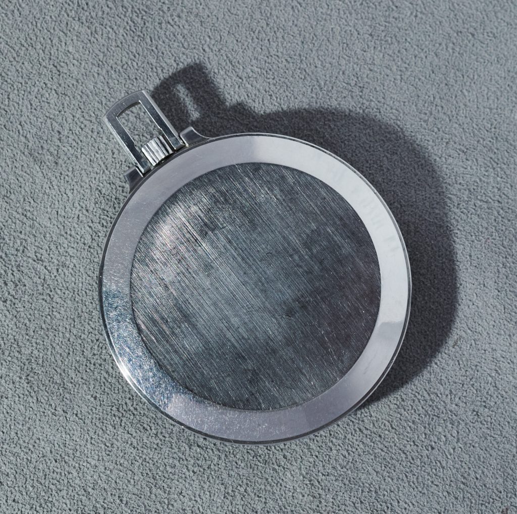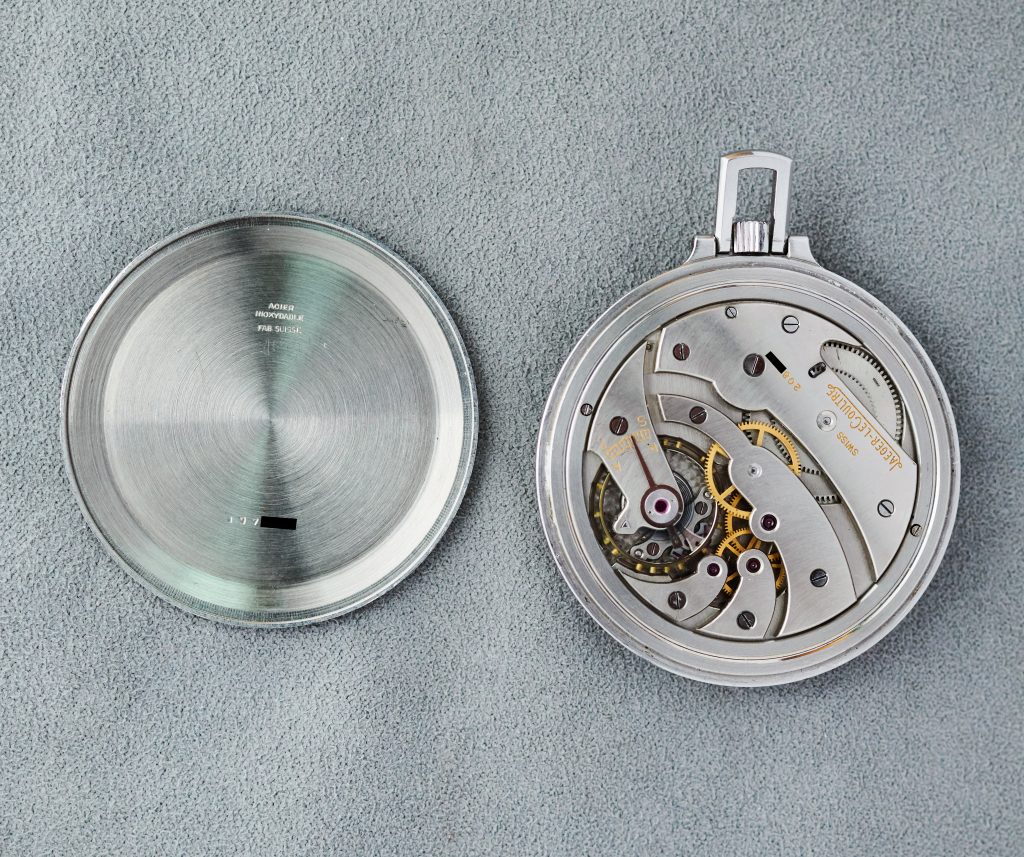 this is an extremely rare jaeger lecoultre pocketwatch in steel from the 1930s art deco era. all parts about this piece are the original ones. the beautiful dial shows some very little and well deserved signs of patina. it´s beautiful movement was serviced in 2025. the jlc comes on a vintage steel chain.